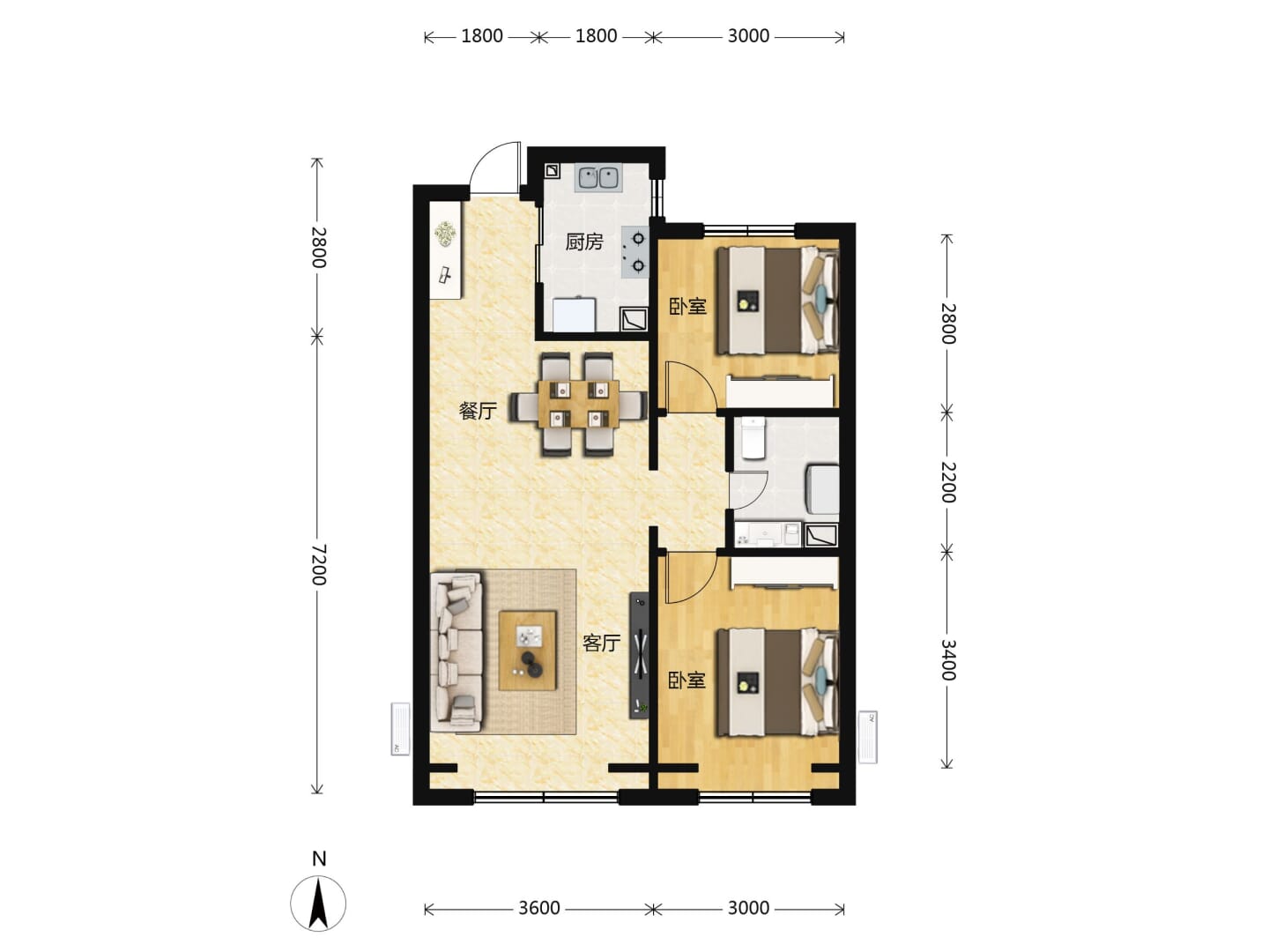 了解2室2厅1卫 住宅 在售户型的详细信息