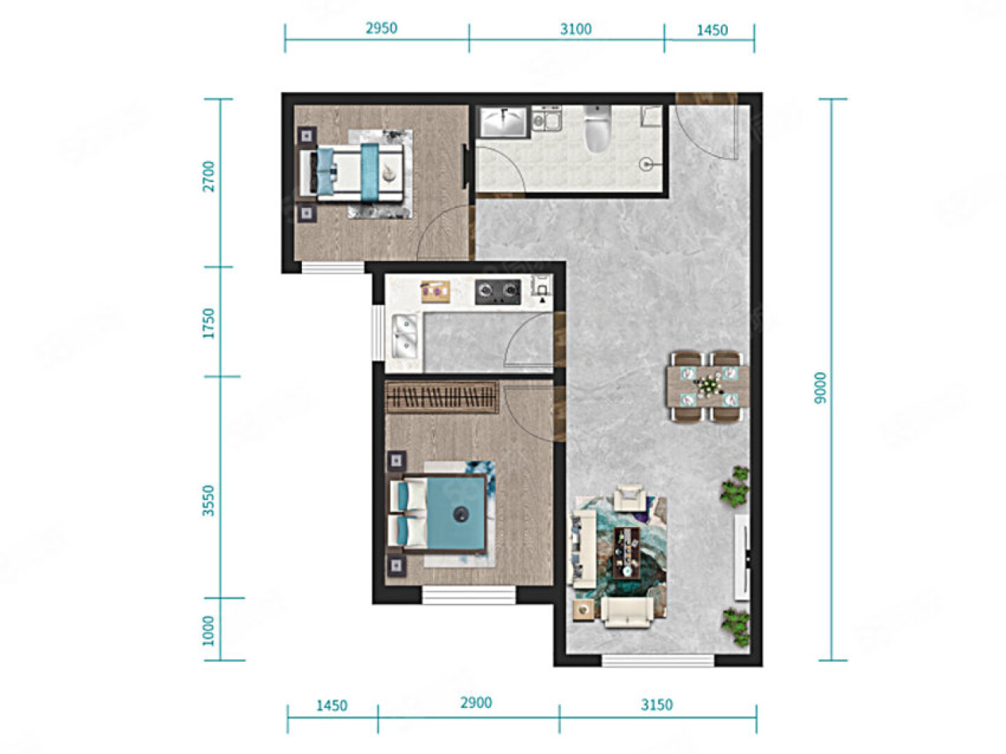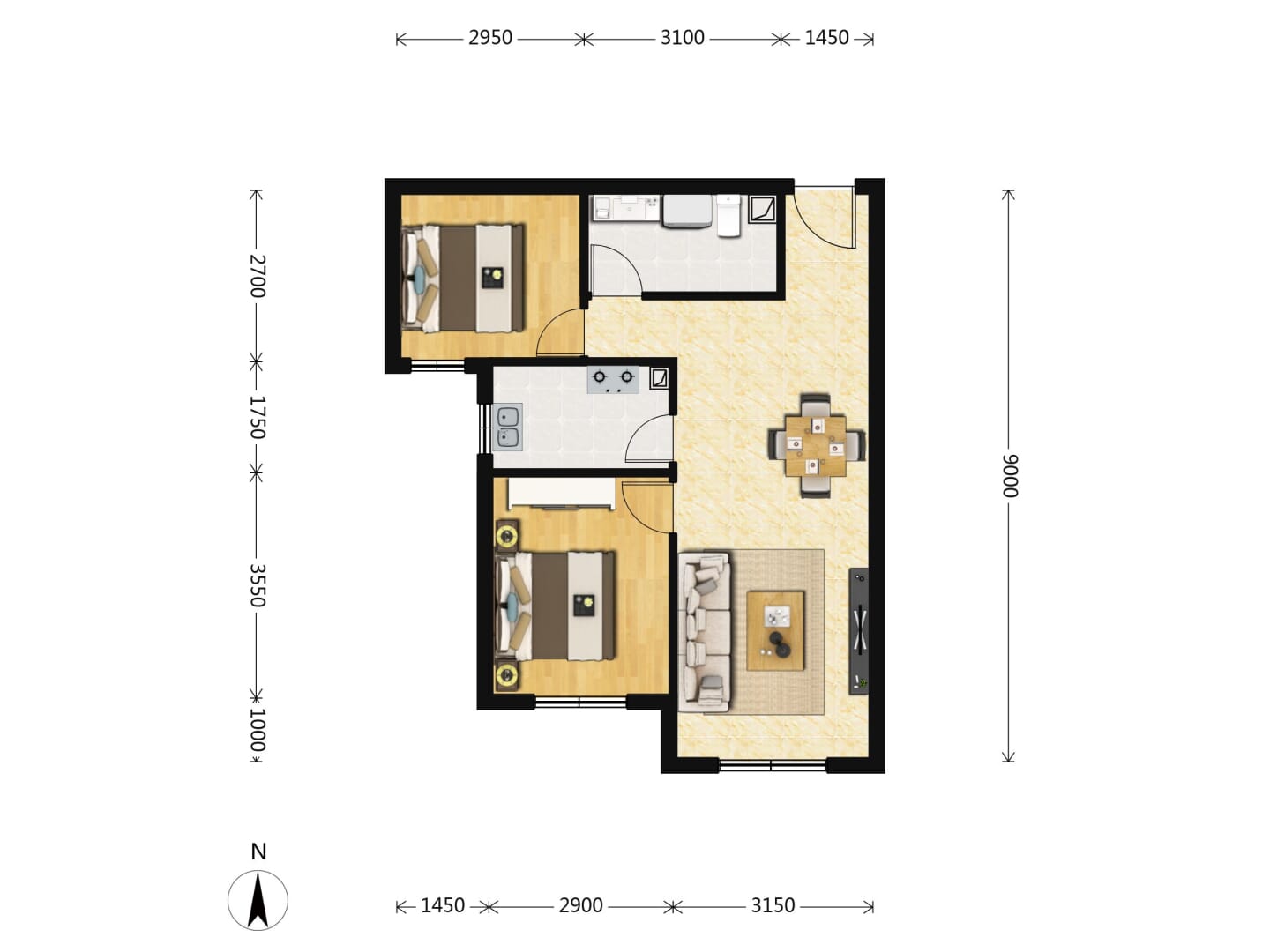 了解2室2厅1卫 住宅 在售户型的详细信息