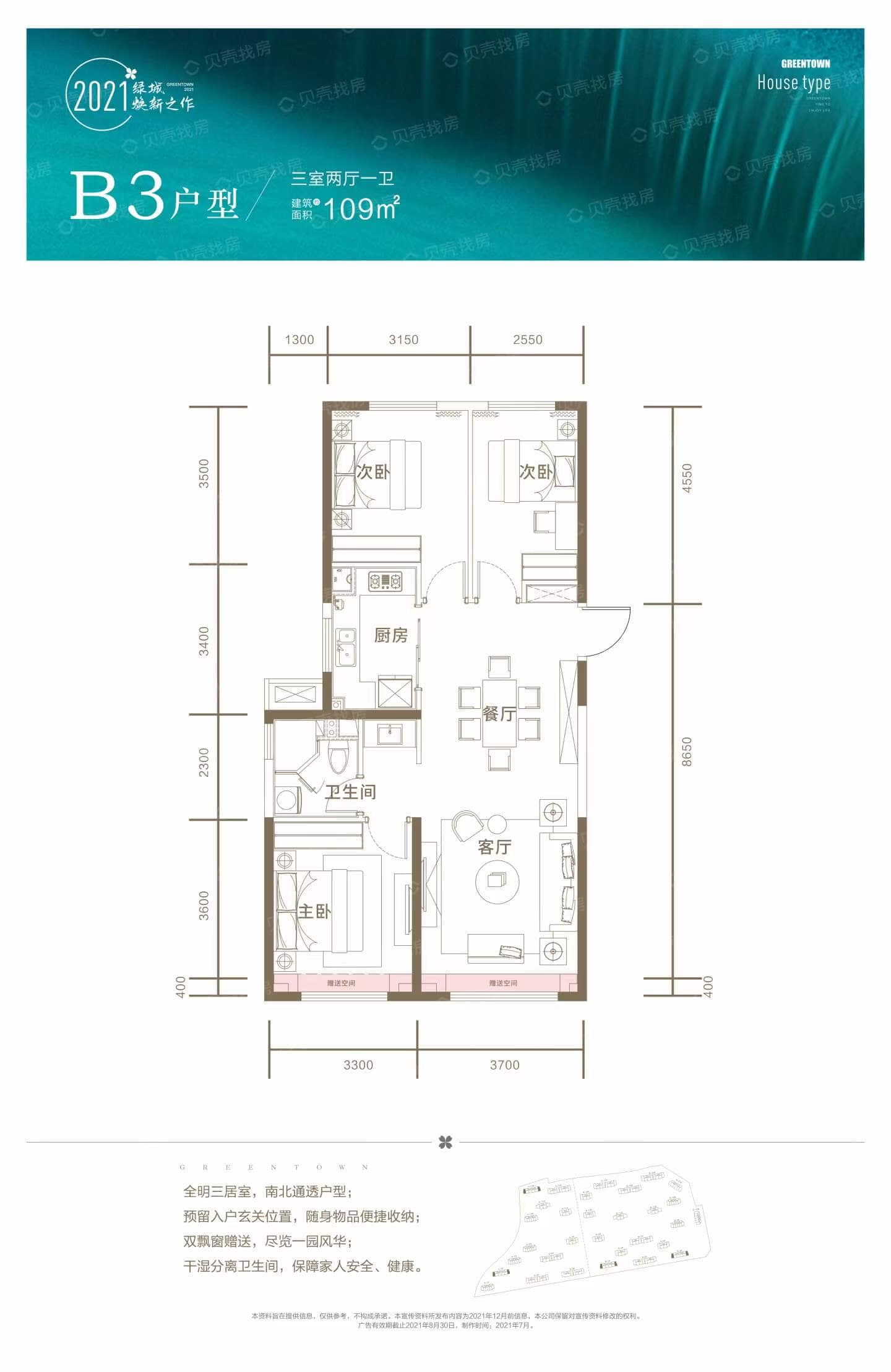 了解3室2厅1卫 住宅 在售户型的详细信息