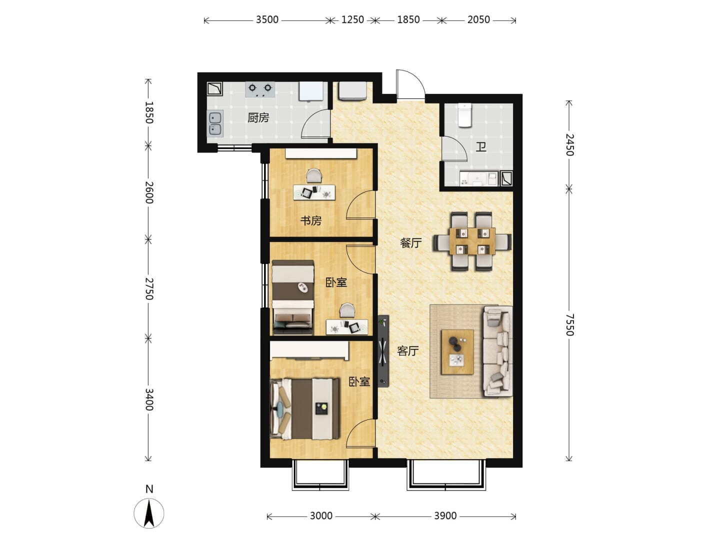 了解3室2厅1卫 住宅 在售户型的详细信息